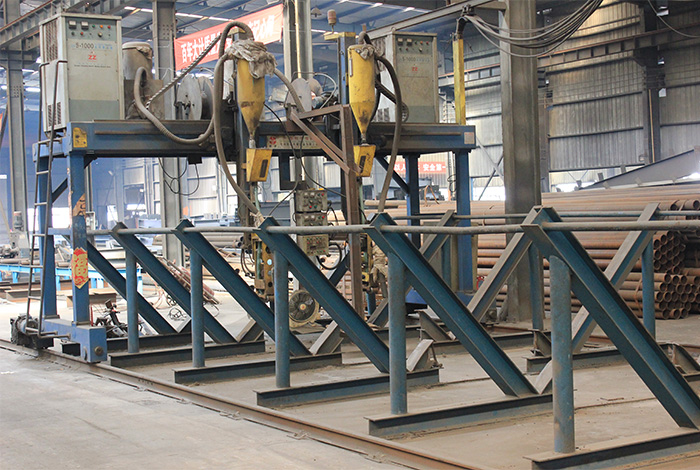 引進了國內(nèi)專業(yè)的全自動管相貫線等,離子切割機、網(wǎng)架桿件雙自動焊接機、網(wǎng)架支托自動焊接設(shè)備、龍門埋弧焊及數(shù)控火焰切割機等優(yōu)質(zhì)生產(chǎn)設(shè)備